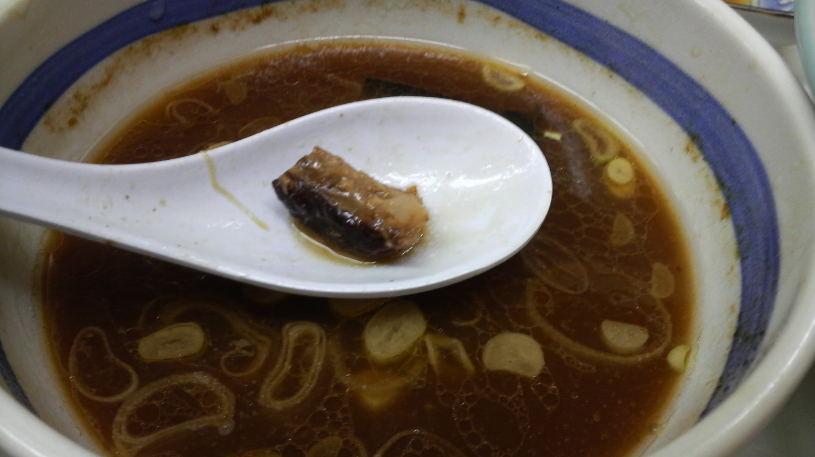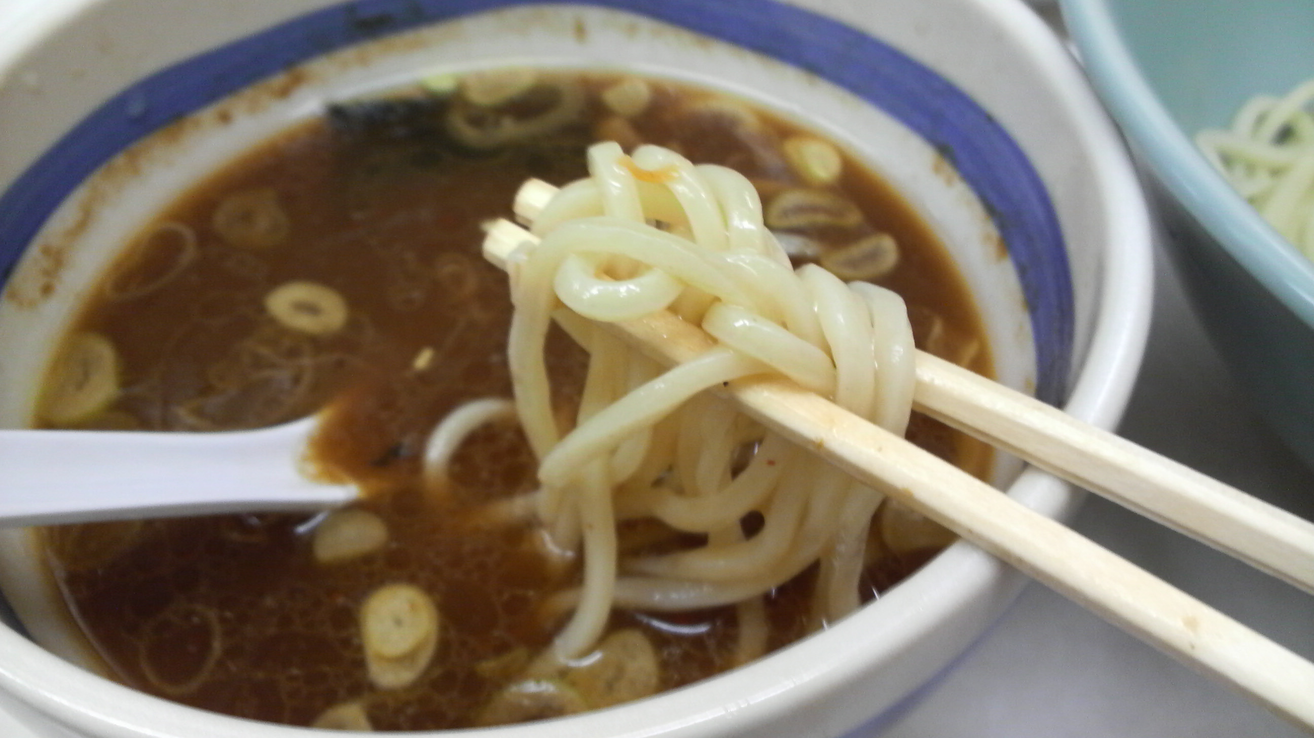 つけ汁を良く見ると幕になるほど油が浮いてるのがわかりました。魚粉も浮いてますね。ま、