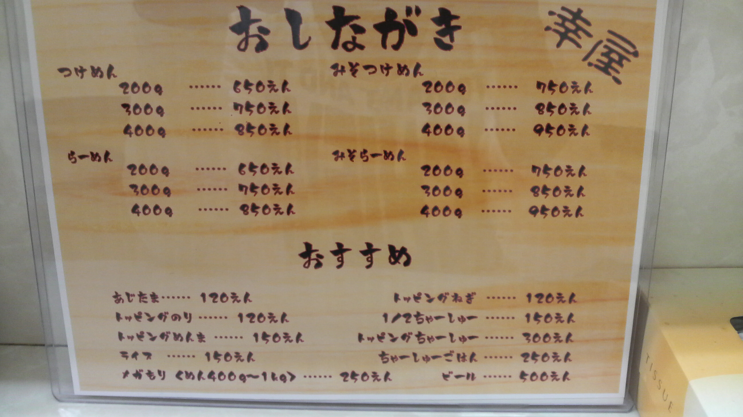 またメニューに目をやると、メガもり。250円で1kgまでいけるそうで。