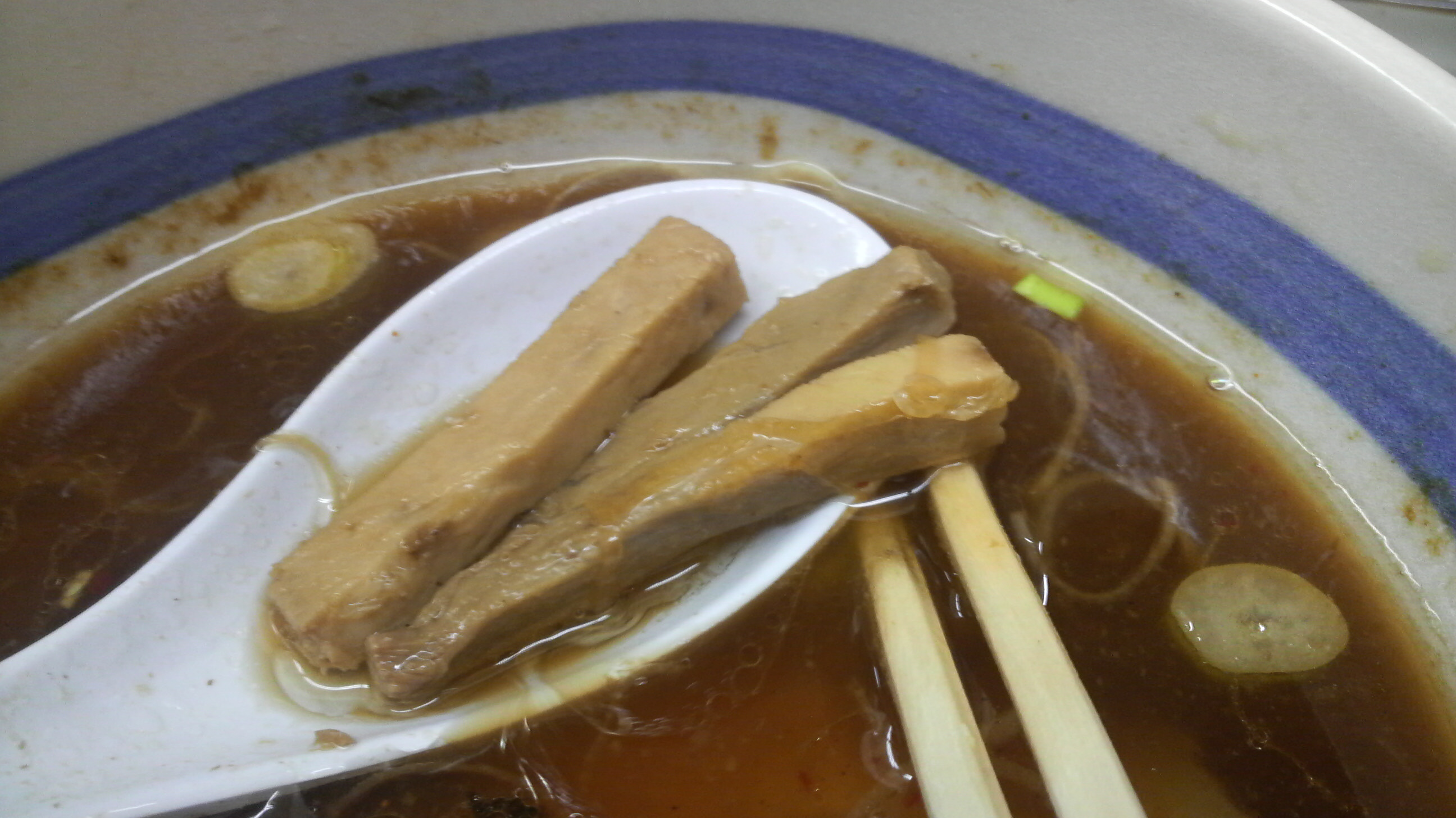 麺は締めてあることもあって弾力バツグン。う〜ん、やっぱり大勝軒っぽいんだよな〜チャーシューがなんと3種類入ってました。
