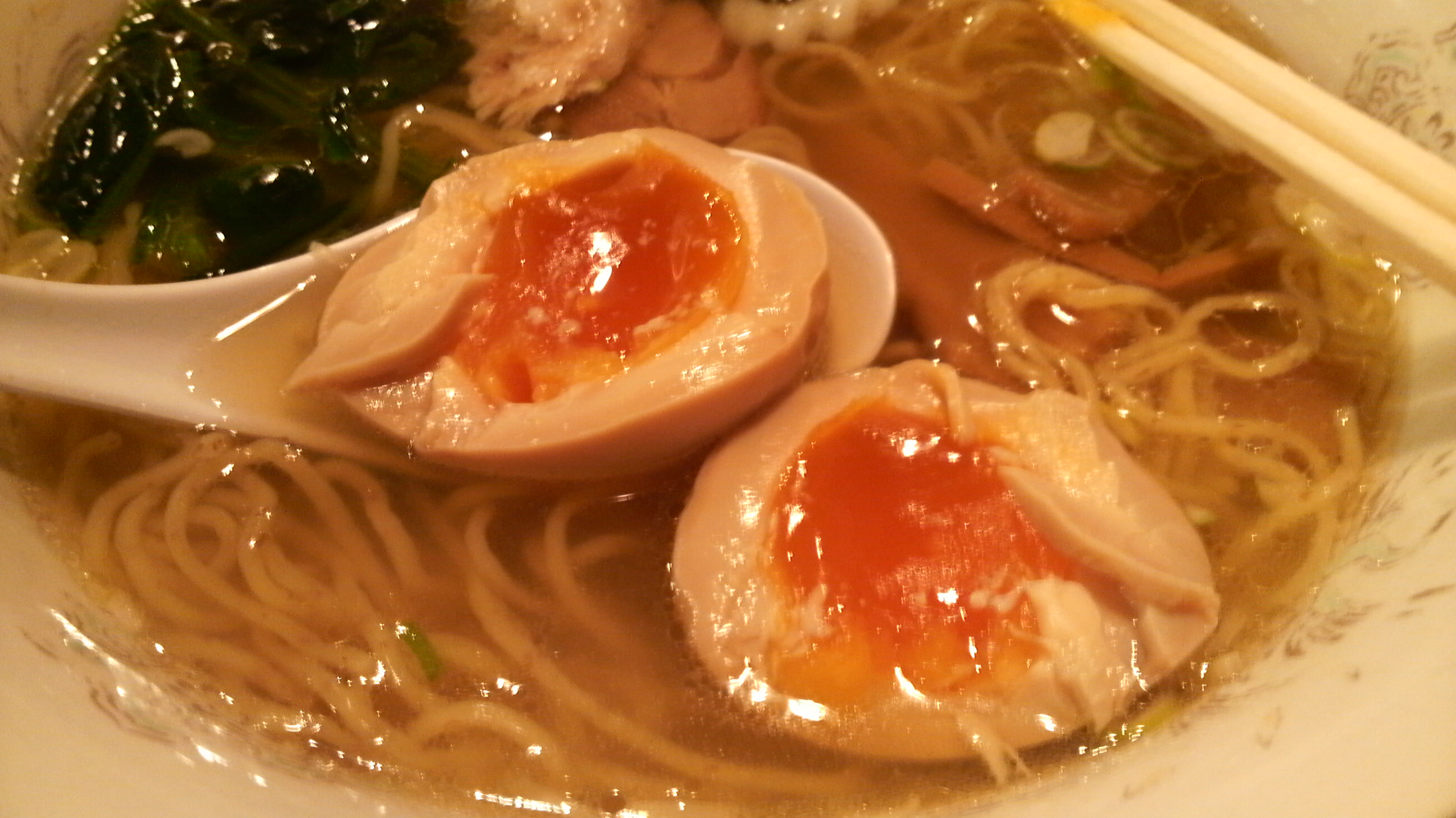 予想通りに澄んだスープ。ラーメン本に出てた写真とは随分違うなとは思いましたが、