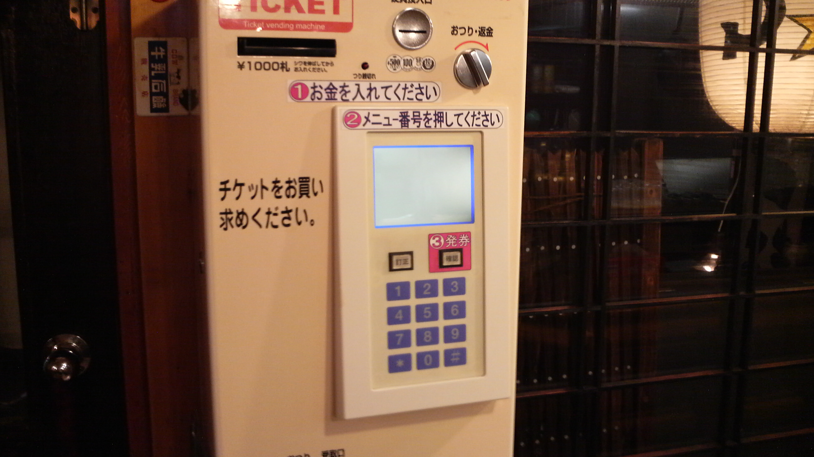 店内入り口付近にある券売機。