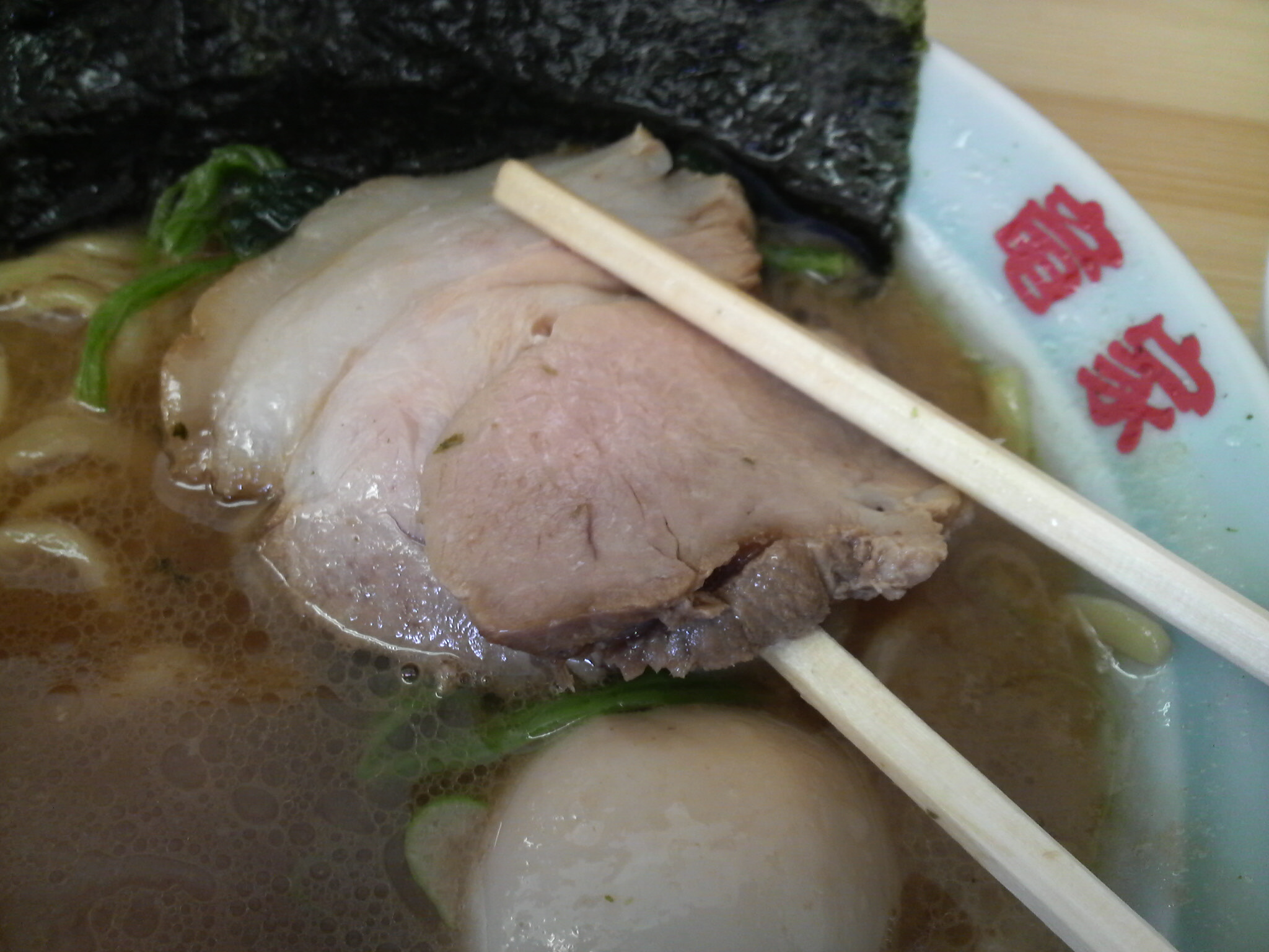 短めの麺なんでサクサクっと食えます。家系としては厚めのロースチャーシュー。