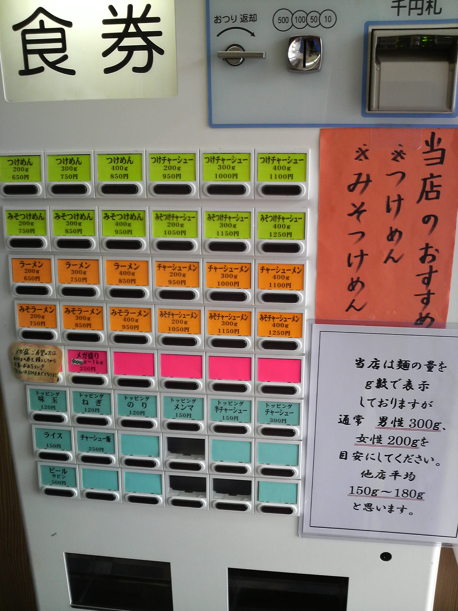 券売機の周辺には800g、900g、1kgのメガ盛り完食者の食券が貼られてたりして