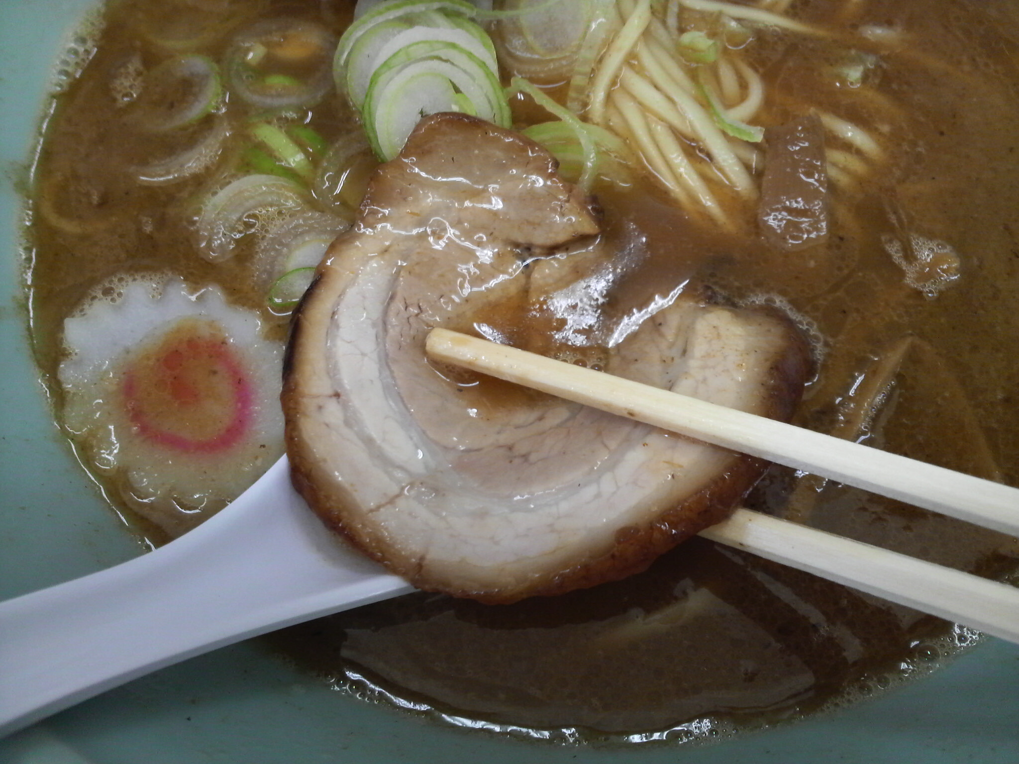やはりラーメンでも太麺の方が良さげです。チャーシューは巻きバラ1枚。