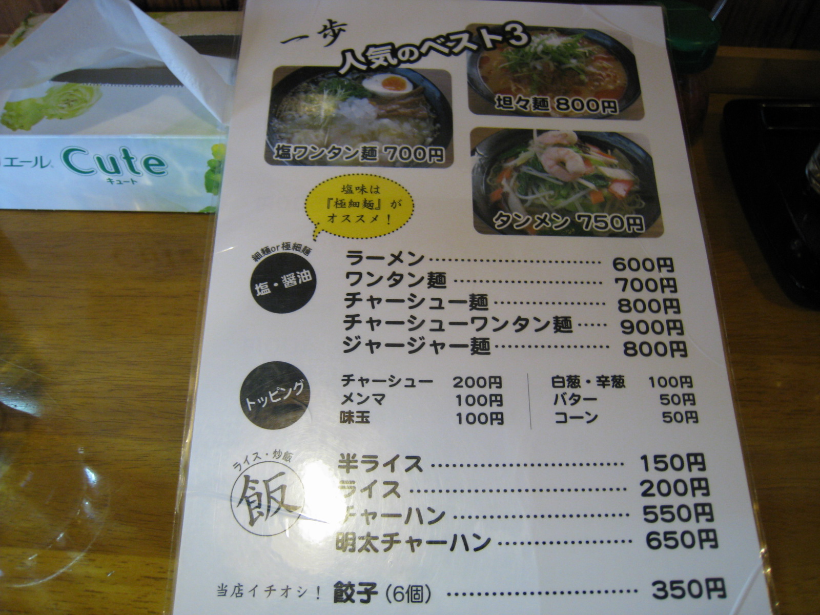 卓上にまとまったメニューが無いのはもったいないような気がします。