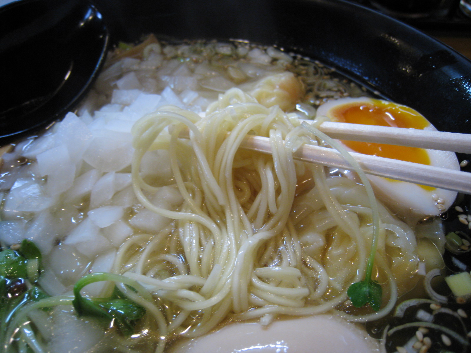 見た目どおりにクリアな味のスープで、塩がキリッとくるんですがしょっぱさは感じません。