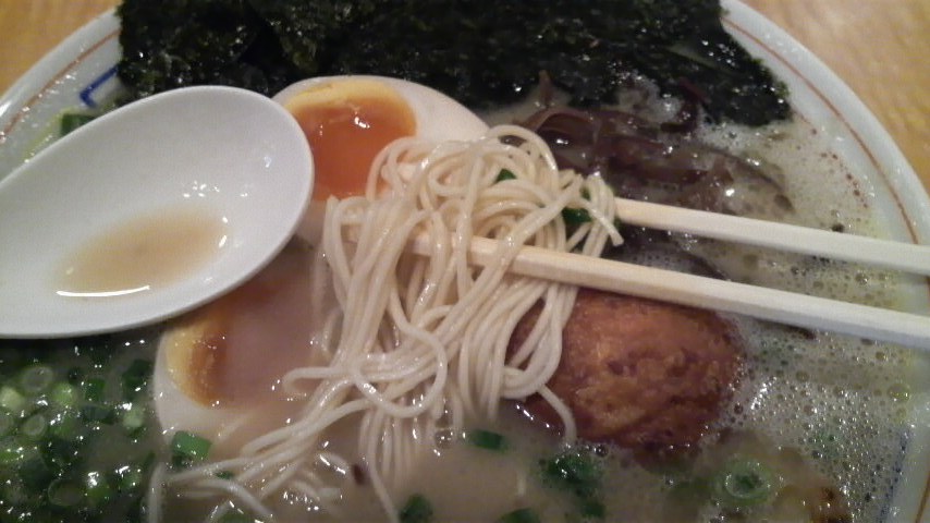 気になりませんでした。なかなか濃厚で美味しいスープですね。麺は九州ラーメンらしい極細麺。