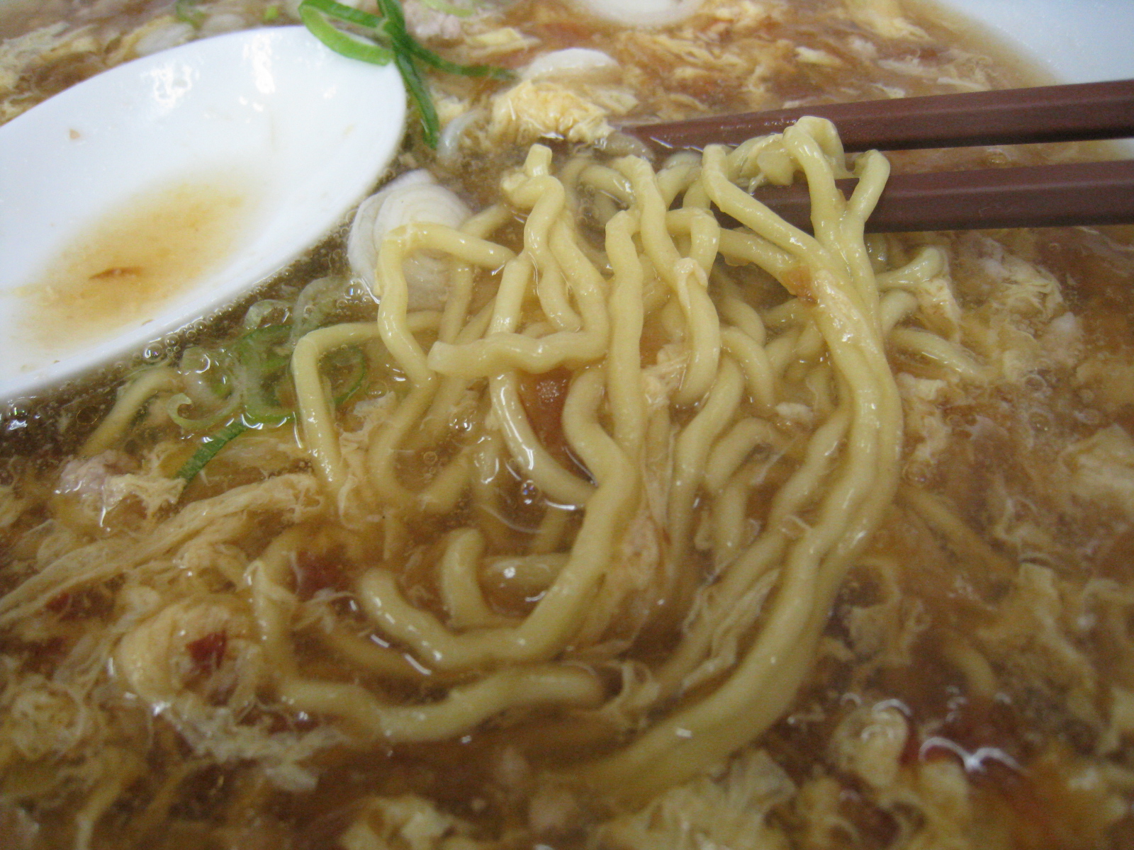 あっさり系醤油スープに玉子餡かけがかかったこの店の看板メニュー。