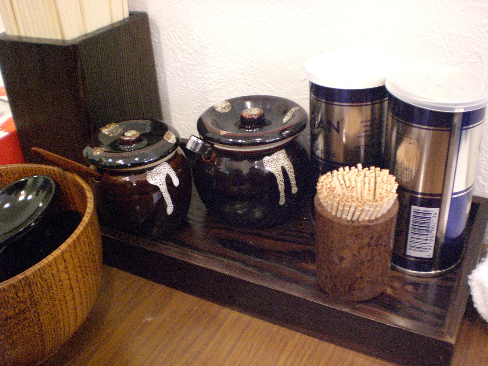 また、800円で黒・白・青、それぞれのつけ麺もやってる模様です。卓上には胡椒の他にニンニクと紅生姜。