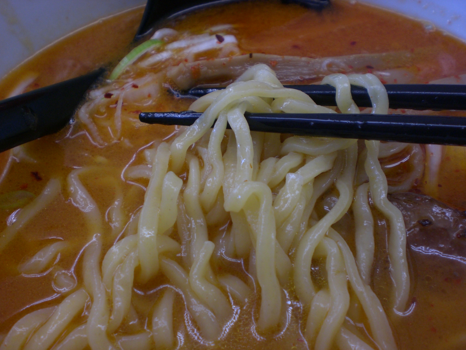 辛さの方は舌を刺すくらいにビリビリきます。一般的には激辛かもですが、俺にとっては(ry味噌らーめんは太麺、とありましたが