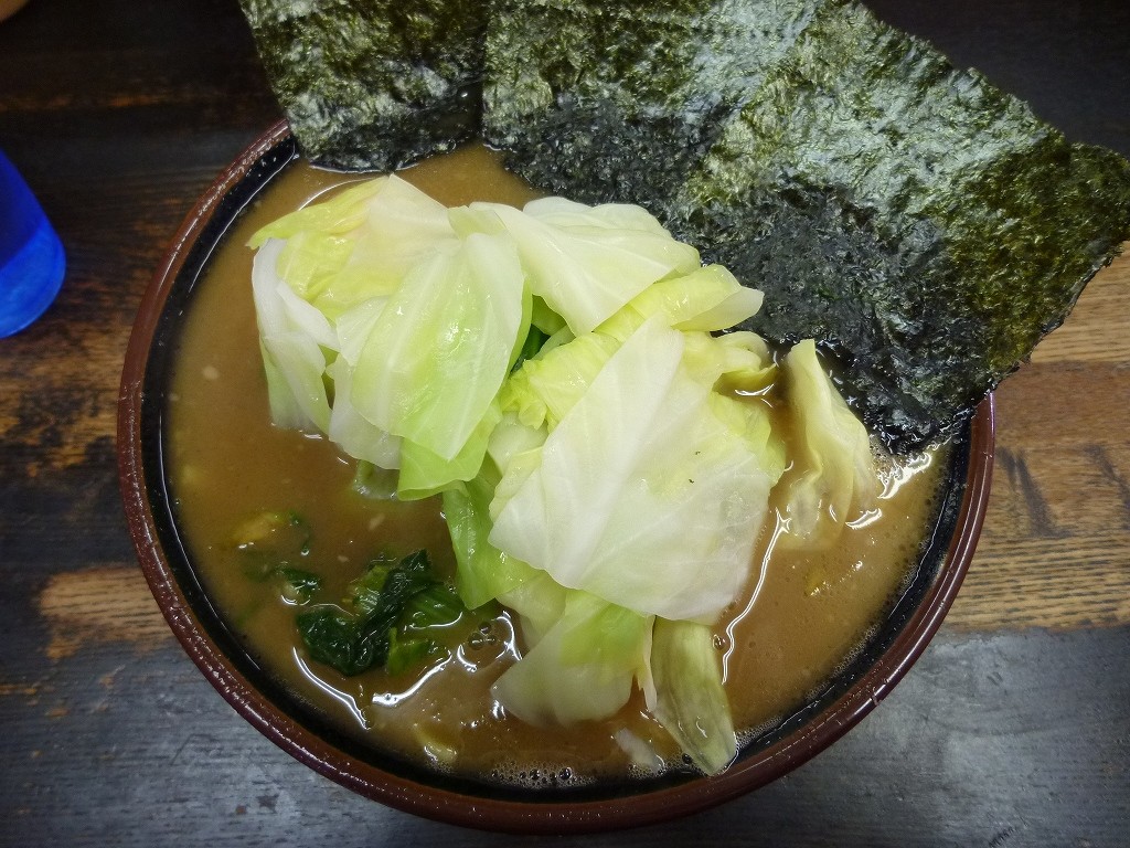前回はラーメンに味付玉子とキャベツで食べてます。