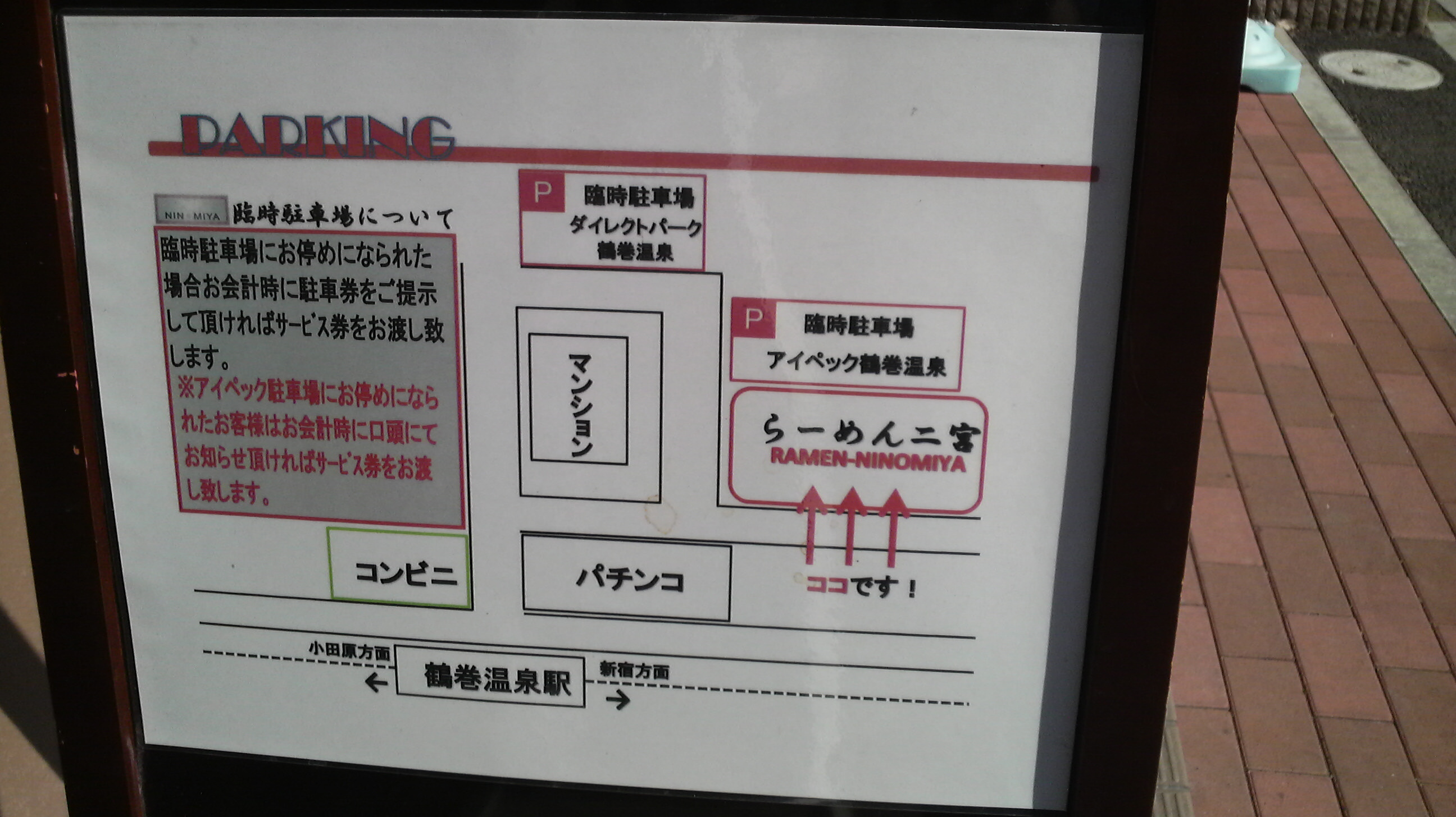 駐車場:店の横1台+指定有料駐車場利用でサービス券 変更していました。