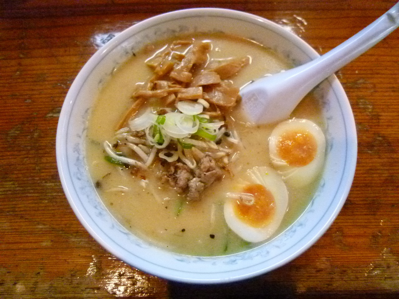 前回は味噌ラーメンに味玉とメンマで食べてます。